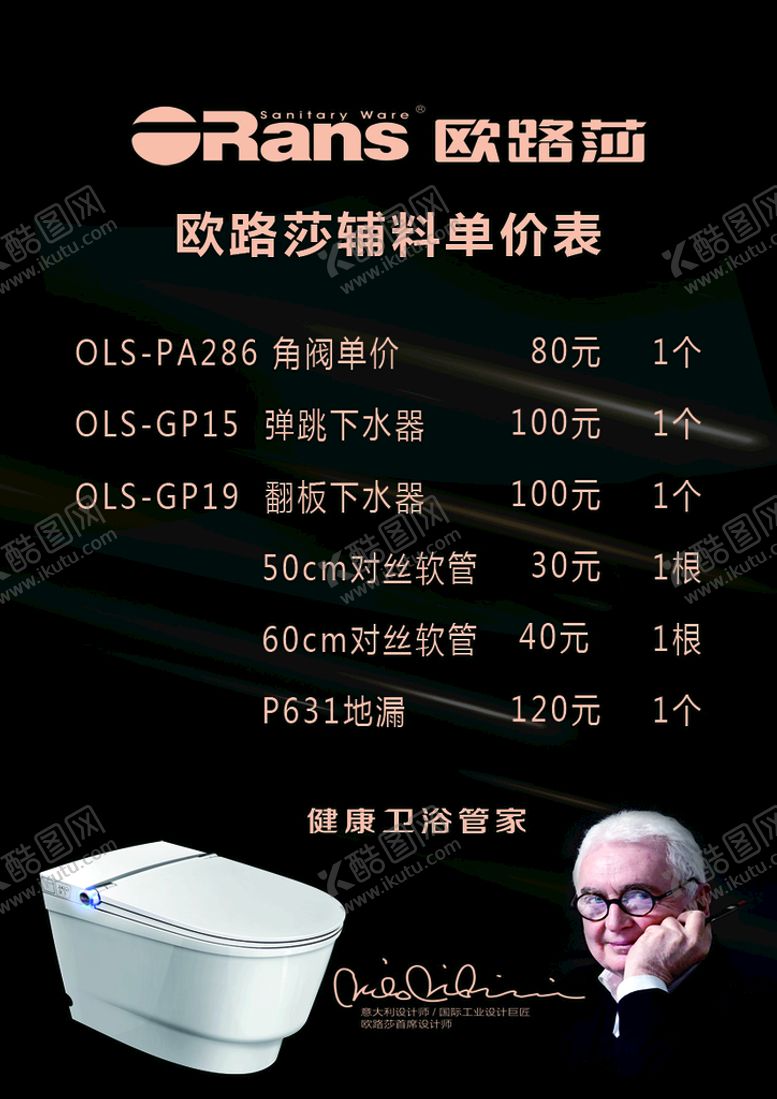共享素材,尺寸大小是2480*3508像素,欧路莎辅料单价表是由平面广告设计师hahaohan上传,浏览本次作品的您可能还对欧路莎,辅料,单价表,健康卫浴管家,卫浴价目表,psd,分层图,,平面广告,,平面广告感兴趣。