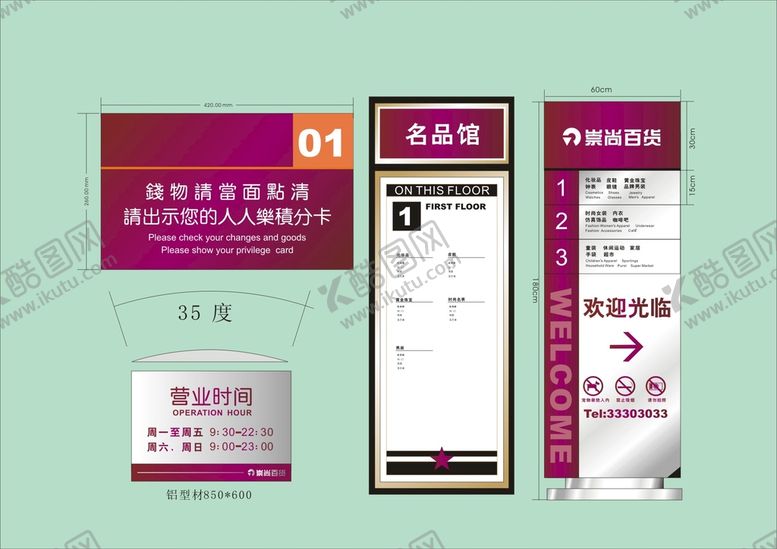 酷图网为你提供精美好看的素材模板下载,本次平面广告作品主题是VI导视设计,素材ID编号是41236902130644082664,格式是CDR,建议使用打开编辑,或是"通过网上查询一下对应格式的打开软件";该VI导视设计素材大小是250.9 KB,素材主要颜色以粉色为主,素材分享方式属于