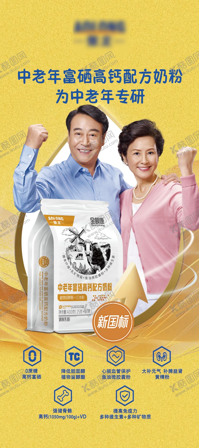 共享素材,尺寸大小是2268*5669像素,中老年高钙奶粉展架是由平面广告设计师aqxielin上传,浏览本次作品的您可能还对展架,中老年奶粉,人物,介绍,,平面广告,,平面广告感兴趣。