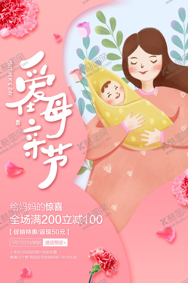 酷图网为你提供精美好看的素材模板下载,本次平面广告作品主题是母亲节海报,素材ID编号是42130609181956496903,格式是PSD,建议使用打开编辑,或是"通过网上查询一下对应格式的打开软件";该母亲节海报素材大小是121.7 MB,素材主要颜色以粉色为主,素材分享方式属于