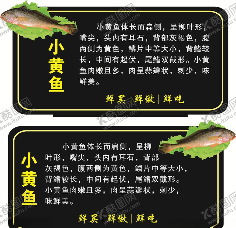 酷图网为你提供精美好看的素材模板下载,本次平面广告作品主题是小黄鱼,素材ID编号是42707604242144364450,格式是CDR,建议使用打开编辑,或是"通过网上查询一下对应格式的打开软件";该小黄鱼素材大小是702.58 KB,素材主要颜色以黑色为主,素材分享方式属于