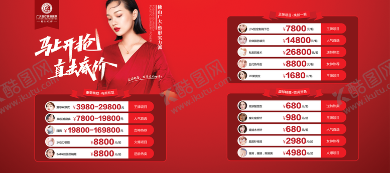 共享素材,尺寸大小是8858*3937像素,医美活动图是由平面广告设计师ejianhuang上传,浏览本次作品的您可能还对背景板,活动展板,医美,活动,整形,底价,项目,价格,,平面广告,,平面广告感兴趣。