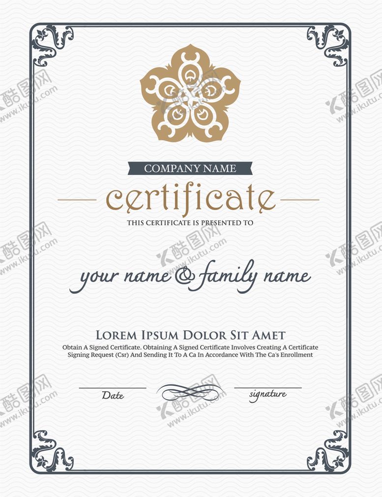 酷图网为你提供精美好看的素材模板下载,本次平面广告作品主题是证书,素材ID编号是43076910062130412508,格式是EPS,建议使用打开编辑,或是"通过网上查询一下对应格式的打开软件";该证书素材大小是1.88 MB,素材主要颜色以白色为主,素材分享方式属于