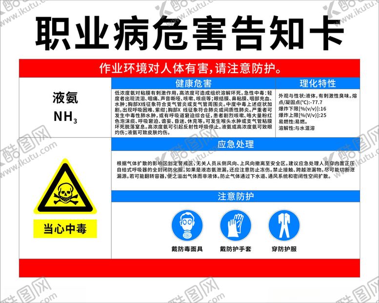 像素,职业危害告知卡是由平面广告设计师li452546674上传,浏览本次作品的您可能还对职业危害,危害告知卡,危害告知牌,告知卡,告知牌,广告,危害告知,液氨,NH3,当心中毒,CDR,设计,室外广告设计,广告设计,平面广告,,平面广告感兴趣。