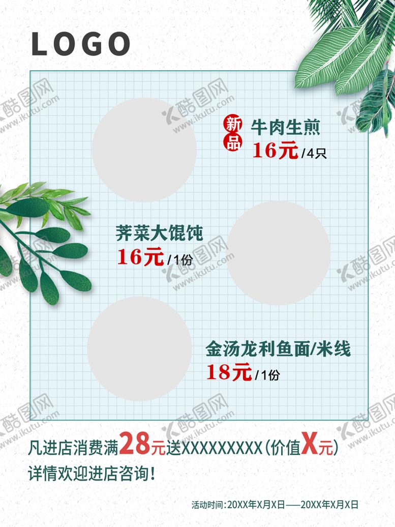 酷图网为你提供精美好看的素材模板下载,本次平面广告作品主题是菜单,素材ID编号是43785609140634413796,格式是PSD,建议使用打开编辑,或是"通过网上查询一下对应格式的打开软件";该菜单素材大小是131.77 MB,素材主要颜色以白色为主,素材分享方式属于