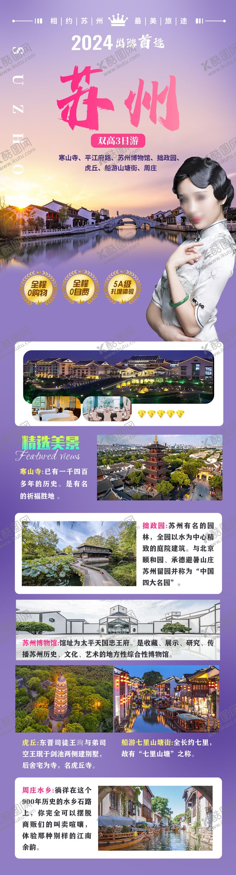 共享素材,尺寸大小是1080*3992像素,苏州旅游海报是由平面广告设计师dafuxuan上传,浏览本次作品的您可能还对海报,长图,旅游,旅行,苏州,寒山寺,拙政园,博物馆,虎丘,文旅,水乡,旗袍,景点,,平面广告,,平面广告感兴趣。
