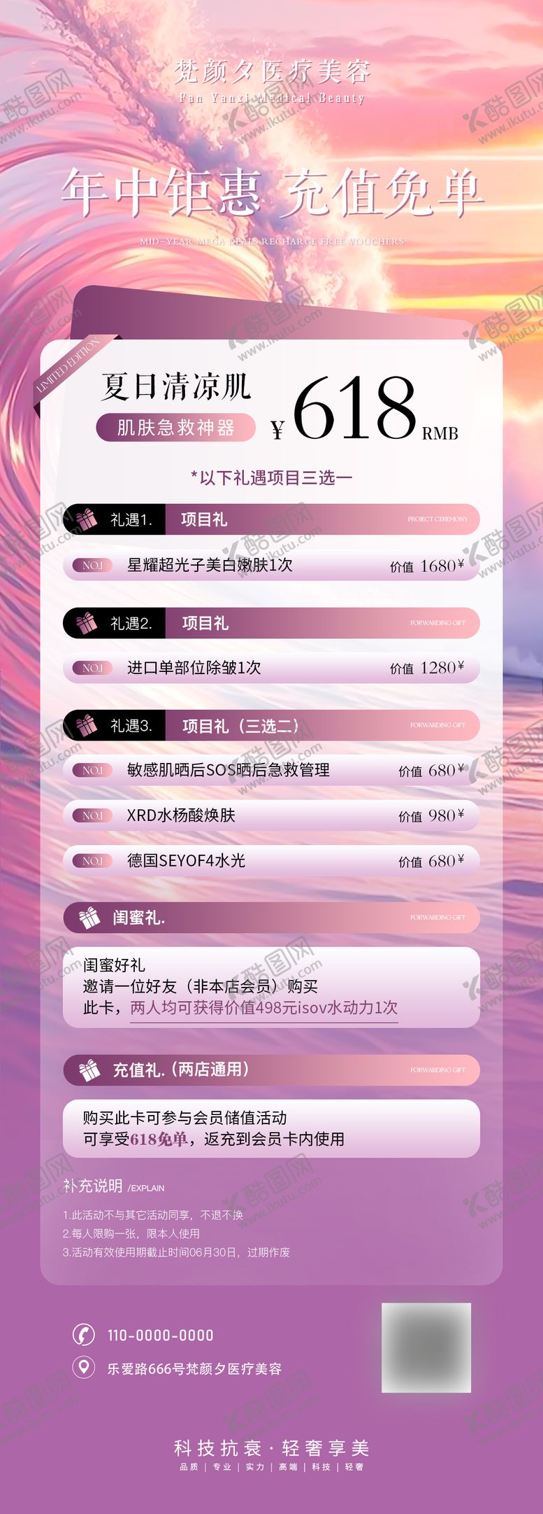 共享素材,尺寸大小是1080*3006像素,618年中钜惠海报是由平面广告设计师poonsun上传,浏览本次作品的您可能还对海报,长图,医美,整形,618,年中钜惠,夏日,五重礼,,平面广告,,平面广告感兴趣。