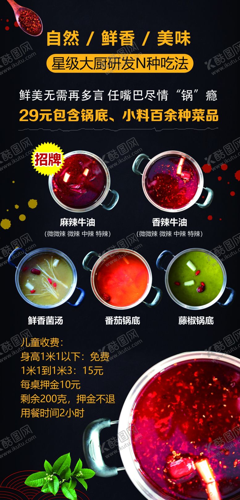 原创共享素材,尺寸大小是2262*4724像素,火锅锅底是由平面广告设计师caoshaohua2009上传,浏览本次作品的您可能还对火锅锅底,麻辣牛油,香辣牛油,鲜香菌汤,番茄锅底,藤椒锅底,叶子,平面广告,,平面广告感兴趣。