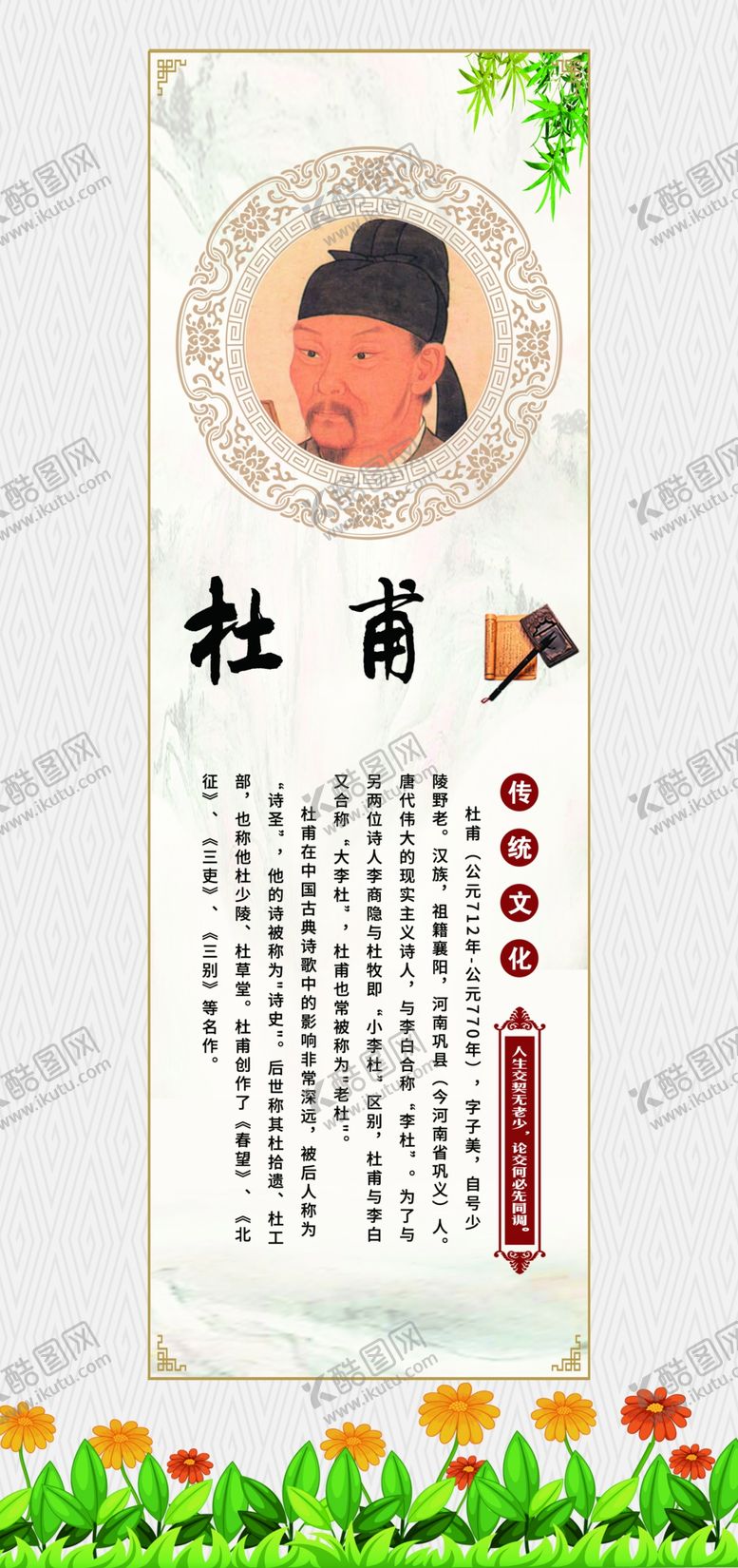 共享素材,尺寸大小是2268*4819像素,名人名言柱子文化是由平面广告设计师candry上传,浏览本次作品的您可能还对名人名言,柱子文化,校园文化,杜甫,诗人,小学文化,,平面广告,,平面广告感兴趣。