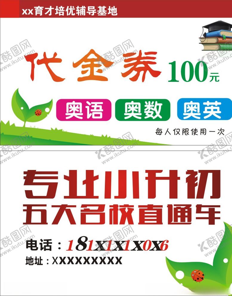像素,代金券是由平面广告设计师zhangyangyingzi上传,浏览本次作品的您可能还对教育代金券,辅导班代金券,培训代金券,培训机构代金,卡通代金券,试读代金券,儿童试读卡,试读体验券,儿童代金券,少儿代金券,考编培训班,教育现金券,代金券模版,幼师代金券,幼儿园代金券,托管班代金券,课外班代金券,辅导班现金券,成人考试班,代金券,现金券,抵现券,教育抵现券,教育抽奖券,书店代金券,平面广告,,平面广告感兴趣。