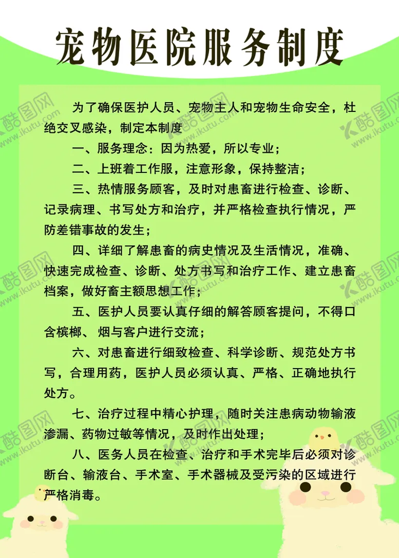共享素材,尺寸大小是1969*2756像素,宠物医院服务制度是由免抠元素设计师xm121上传,浏览本次作品的您可能还对宠物医院,服务制度,制度海报,宣传,压板,免抠元素,,免抠元素感兴趣。
