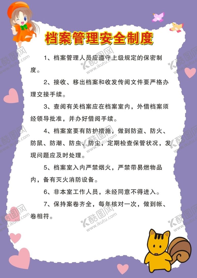 酷图网为你提供精美好看的素材模板下载,本次平面广告作品主题是幼儿园档案管理安全制度展板,素材ID编号是52966602050748186954,格式是CDR,建议使用打开编辑,或是"通过网上查询一下对应格式的打开软件";该幼儿园档案管理安全制度展板素材大小是125.01 KB,素材主要颜色以白色为主,素材分享方式属于