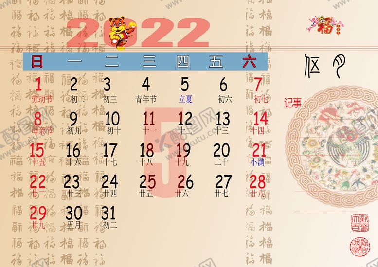 原创共享素材,尺寸大小是3508*2480像素,2022年历 5月 是由平面广告设计师wendi8888上传,浏览本次作品的您可能还对2022年历,挂历,记事年历,公历农历,节日齐全,台历,月份,,平面广告,,平面广告感兴趣。