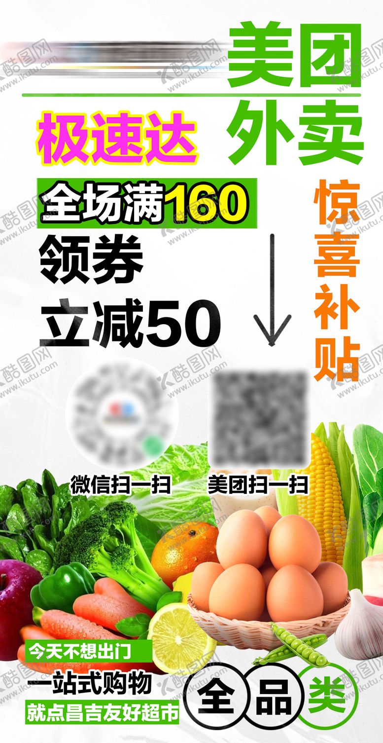 共享素材,尺寸大小是1722*2781像素,超市外卖活动海报是由平面广告设计师acecat上传,浏览本次作品的您可能还对海报,生鲜,超市,外卖,蔬菜,水果,促销,优惠,,平面广告,,平面广告感兴趣。