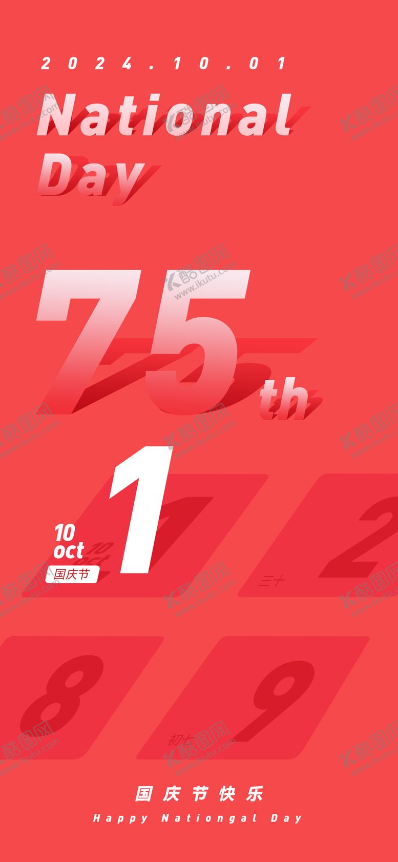 共享素材,尺寸大小是1125*2346像素,国庆节立体海报是由平面广告设计师aids1324170上传,浏览本次作品的您可能还对海报,公历节日,国庆节,75周年,101,数字,立体,创意,简约,,平面广告,,平面广告感兴趣。