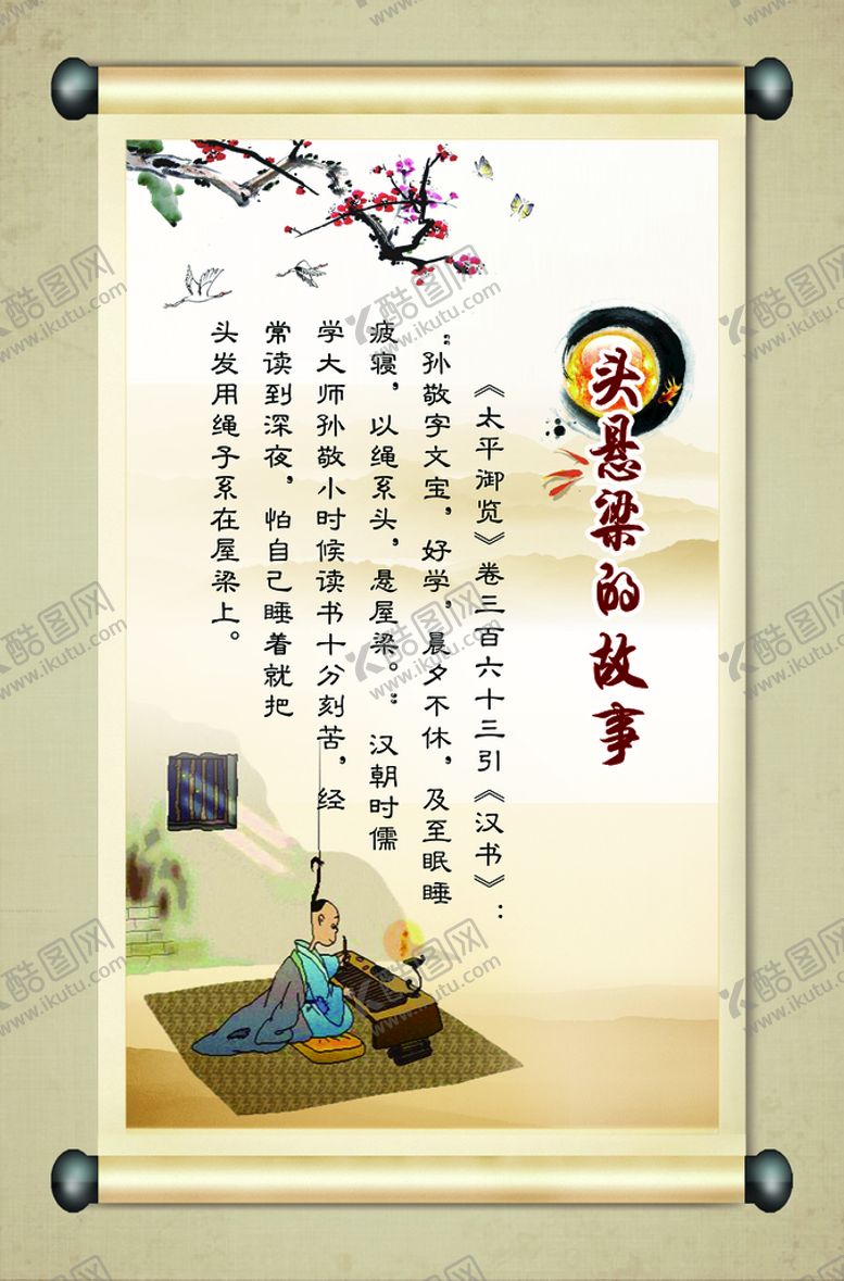 原创共享素材,尺寸大小是1644*2494像素,图书室文化是由平面广告设计师wukai110032上传,浏览本次作品的您可能还对阅览室文化,图书室文化,图书室挂画,阅览室挂画,中国风背景,古典背景,画轴模板,画轴背景,头悬梁故事,,平面广告,,平面广告感兴趣。