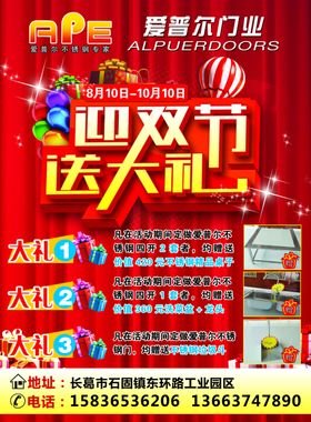 共享素材,尺寸大小是2480*3366像素,室内门迎双节送大礼活动彩页海报是由免抠元素设计师snoopy10222001上传,浏览本次作品的您可能还对室内门,迎双节,送大礼,活动彩页海报,国庆节,中秋节,红色背景,开业背景,活动背景,红色促销背景,盛大开业,促销背景,免抠元素,,免抠元素感兴趣。