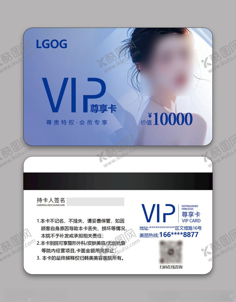 共享素材,尺寸大小是1034*644像素,美容会员卡VIP卡是由平面广告设计师ForeverCG1上传,浏览本次作品的您可能还对医美,美容卡,会员,会员卡,VIP卡,平面广告,,平面广告感兴趣。