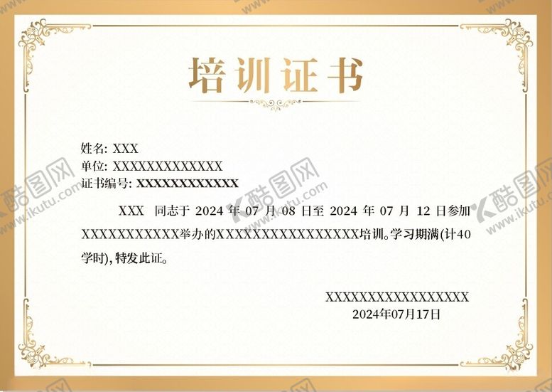 酷图网为你提供精美好看的素材模板下载,本次平面广告作品主题是培训证书,素材ID编号是57850402160454261507,格式是CDR,建议使用打开编辑,或是"通过网上查询一下对应格式的打开软件";该培训证书素材大小是2.63 MB,素材主要颜色以白色为主,素材分享方式属于
