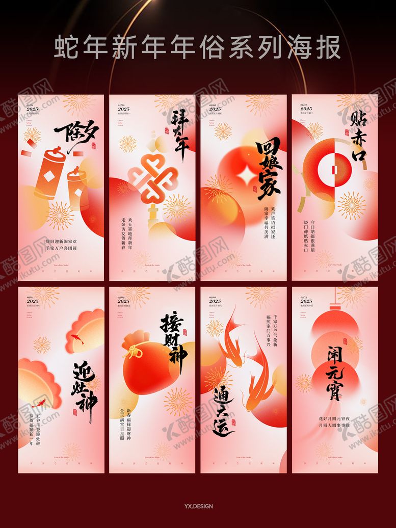 共享素材,尺寸大小是1080*2335像素,2025新年年俗系列海报是由平面广告设计师fgq8022上传,浏览本次作品的您可能还对海报,中国传统节日,除夕,团圆,喜庆,蛇年,年俗,传统文化,,平面广告,,平面广告感兴趣。