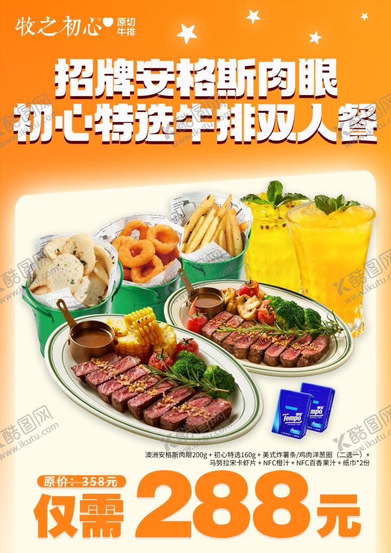 酷图网为你提供精美好看的素材模板下载,本次平面广告作品主题是欢乐牛排餐厅套餐海报图,素材ID编号是60161802231344297676,格式是PSD,建议使用打开编辑,或是"通过网上查询一下对应格式的打开软件";该欢乐牛排餐厅套餐海报图素材大小是85.63 MB,素材主要颜色以橙色为主,素材分享方式属于