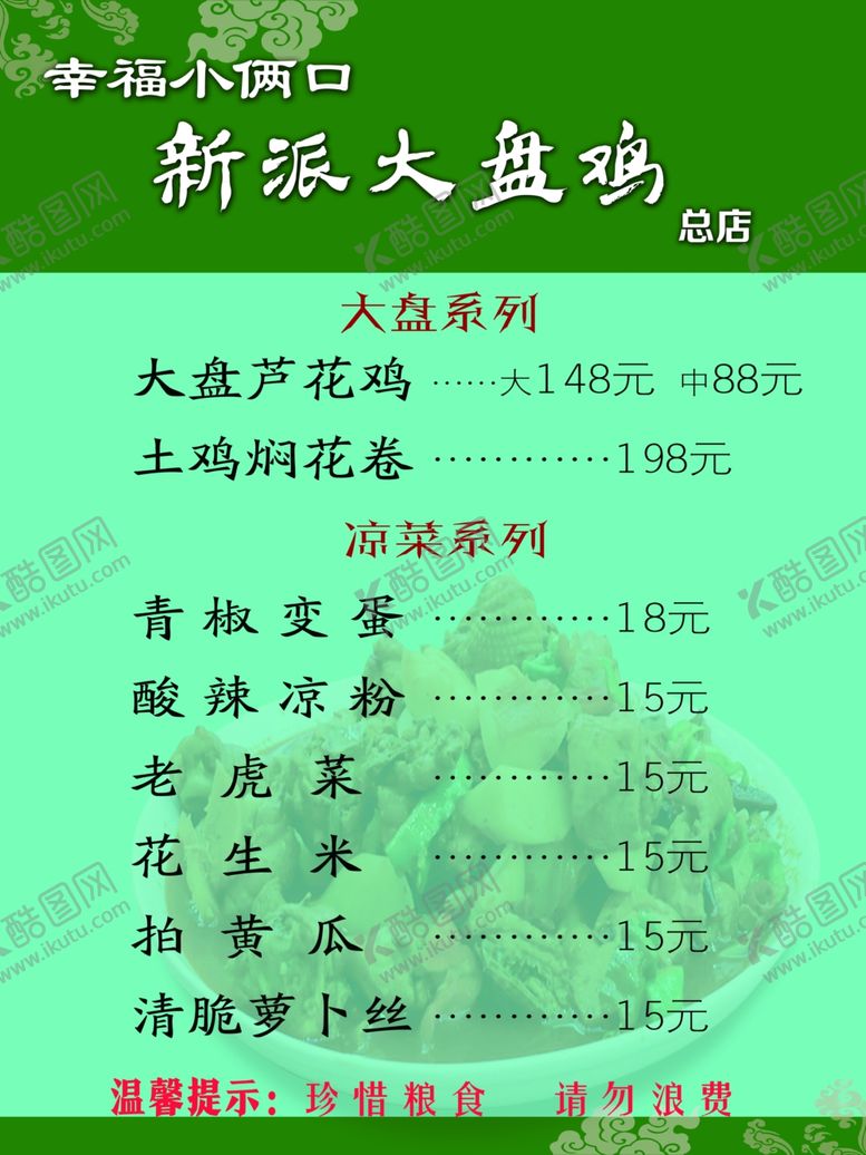 酷图网为你提供精美好看的素材模板下载,本次免抠元素作品主题是大盘鸡餐厅菜单价格表,素材ID编号是60859810191528379761,格式是PSD,建议使用打开编辑,或是"通过网上查询一下对应格式的打开软件";该大盘鸡餐厅菜单价格表素材大小是41.74 MB,素材主要颜色以灰色为主,素材分享方式属于