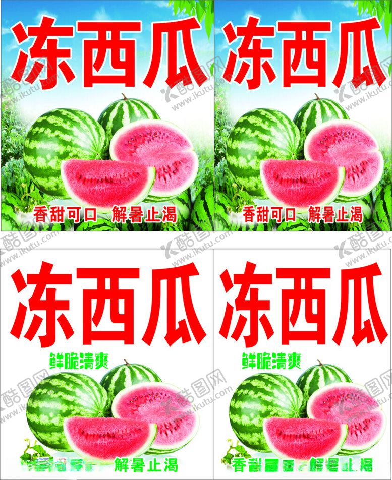 酷图网为你提供精美好看的素材模板下载,本次平面广告作品主题是冻西瓜,素材ID编号是61360002121853064065,格式是CDR,建议使用打开编辑,或是"通过网上查询一下对应格式的打开软件";该冻西瓜素材大小是27.42 MB,素材主要颜色以红色为主,素材分享方式属于