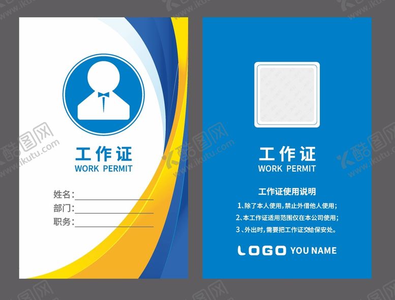酷图网为你提供精美好看的素材模板下载,本次平面广告作品主题是工作证 企业工作牌 出入证 ,素材ID编号是62342111041902156494,格式是CDR,建议使用打开编辑,或是"通过网上查询一下对应格式的打开软件";该工作证 企业工作牌 出入证 素材大小是736.02 KB,素材主要颜色以灰色为主,素材分享方式属于