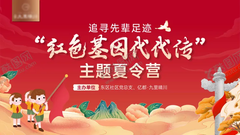 像素,中式党建红色主画面是由平面广告设计师testb321上传,浏览本次作品的您可能还对背景板,活动展板,房地产,党建,红色基因,夏令营,追寻,足迹,祥云,儿童,插画,主画面,红金,,平面广告,,平面广告感兴趣。