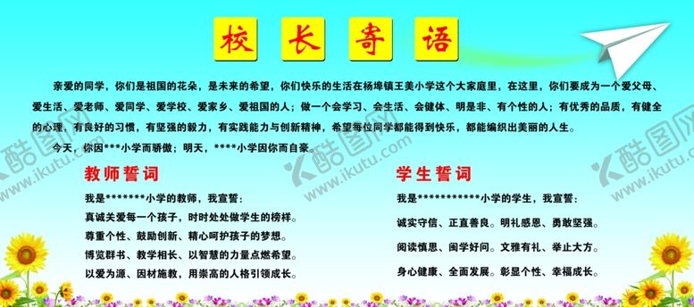 共享素材,尺寸大小是11197*4961像素,校长寄语是由平面广告设计师Play_pig上传,浏览本次作品的您可能还对校长寄语,祖国,蓝天,花,学生宣誓,老师寄语,平面广告,,平面广告感兴趣。