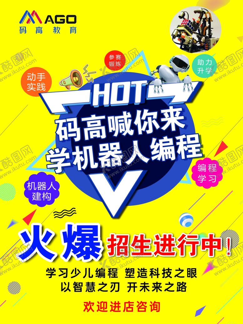 原创共享素材,尺寸大小是7087*9449像素,机器人海报是由平面广告设计师sunlongjun上传,浏览本次作品的您可能还对机器人海报,机器人招生,黄色背景,学机器人编程,火爆招生,招生海报,码高喊你来,平面广告,,平面广告感兴趣。