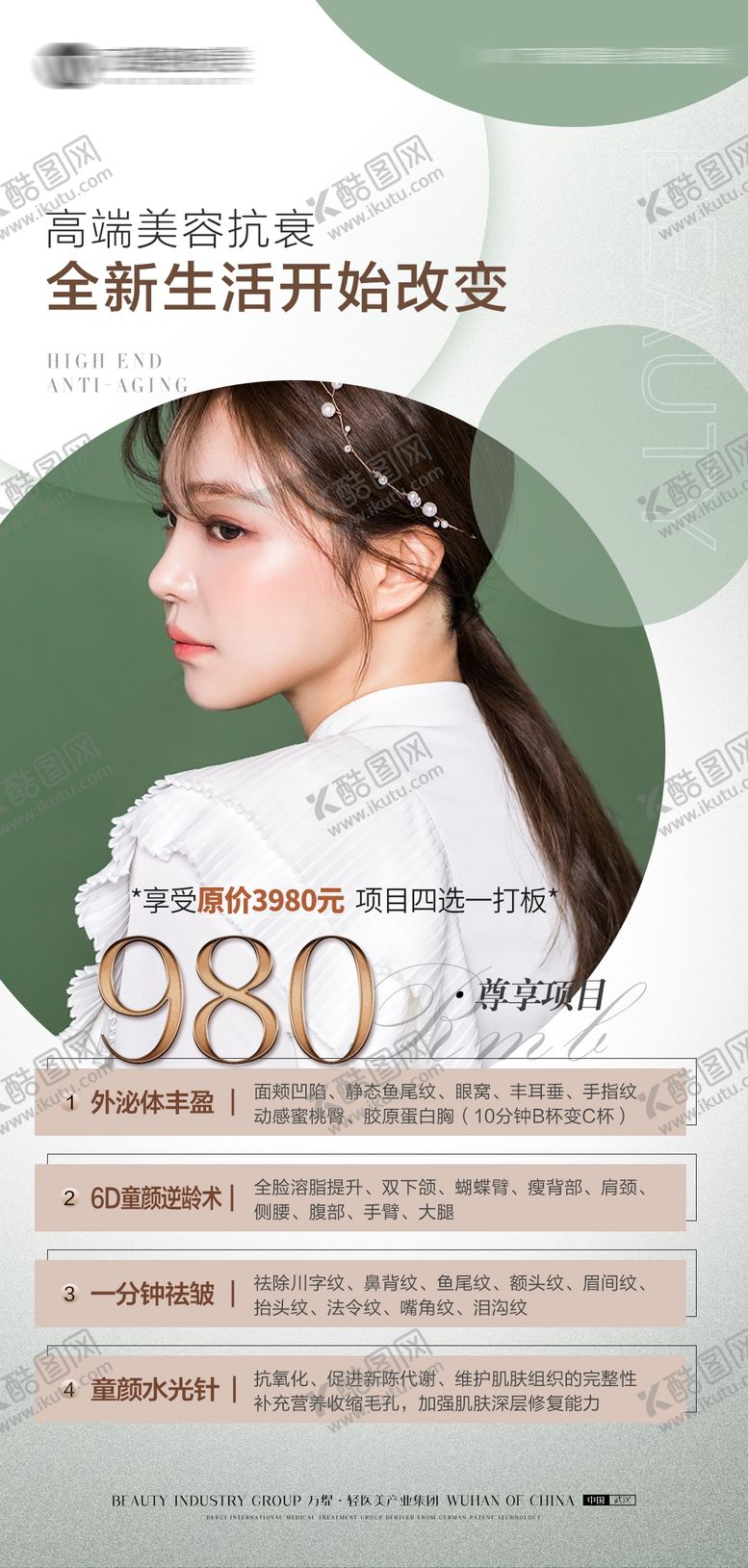 共享素材,尺寸大小是1078*2260像素,医美拓客卡项海报是由平面广告设计师SongSan上传,浏览本次作品的您可能还对海报,医美,抗衰,拓客,卡项,轻奢,人物,,平面广告,,平面广告感兴趣。