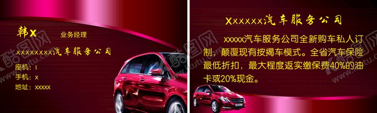 酷图网为你提供精美好看的素材模板下载,本次平面广告作品主题是鼎顺汽车名片,素材ID编号是67049810250603104195,格式是CDR,建议使用打开编辑,或是"通过网上查询一下对应格式的打开软件";该鼎顺汽车名片素材大小是14 MB,素材主要颜色以黑色为主,素材分享方式属于