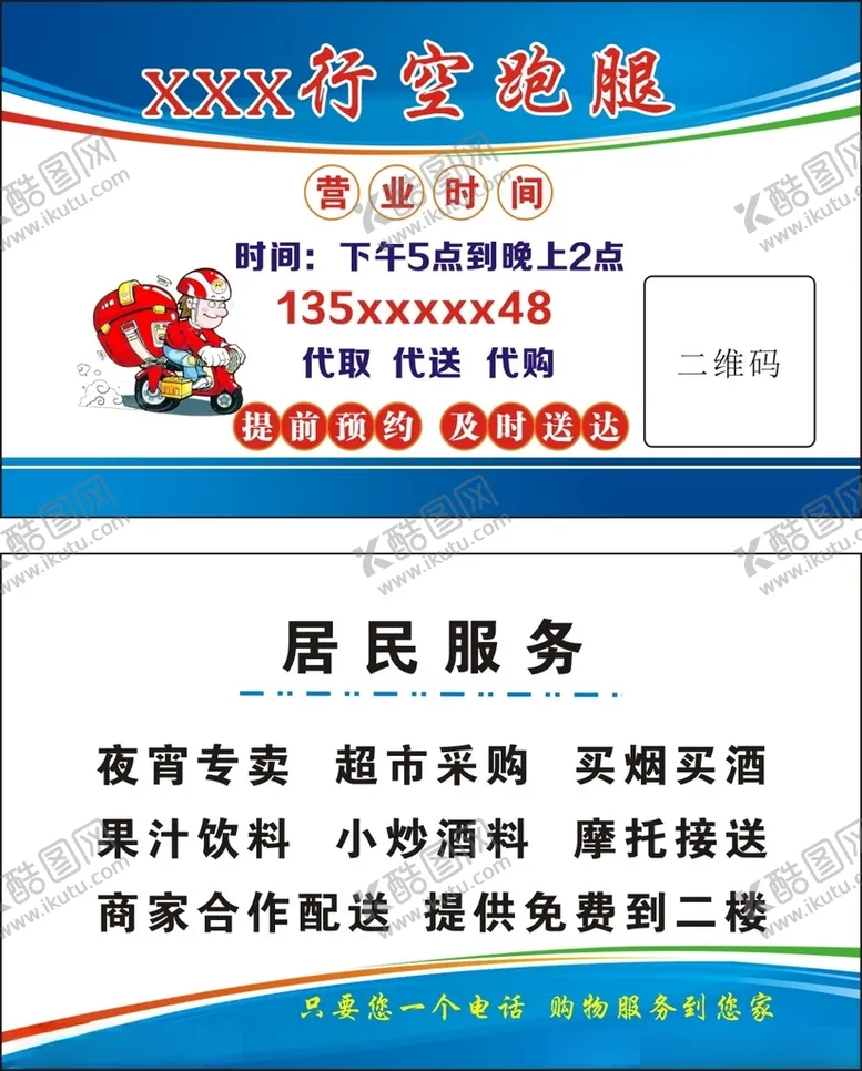 像素,跑腿名片是由其他素材设计师liangchq上传,浏览本次作品的您可能还对跑腿名片,送餐名片,外卖名片,高清图片,原文件,其他素材,,其他素材感兴趣。