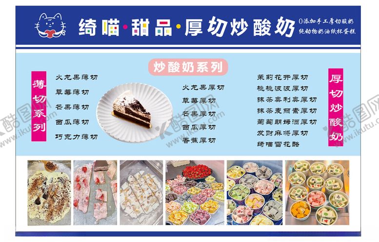 酷图网为你提供精美好看的素材模板下载,本次平面广告作品主题是炒酸奶厚切炒冰,素材ID编号是68776501260349266169,格式是CDR,建议使用打开编辑,或是"通过网上查询一下对应格式的打开软件";该炒酸奶厚切炒冰素材大小是18.76 MB,素材主要颜色以白色为主,素材分享方式属于