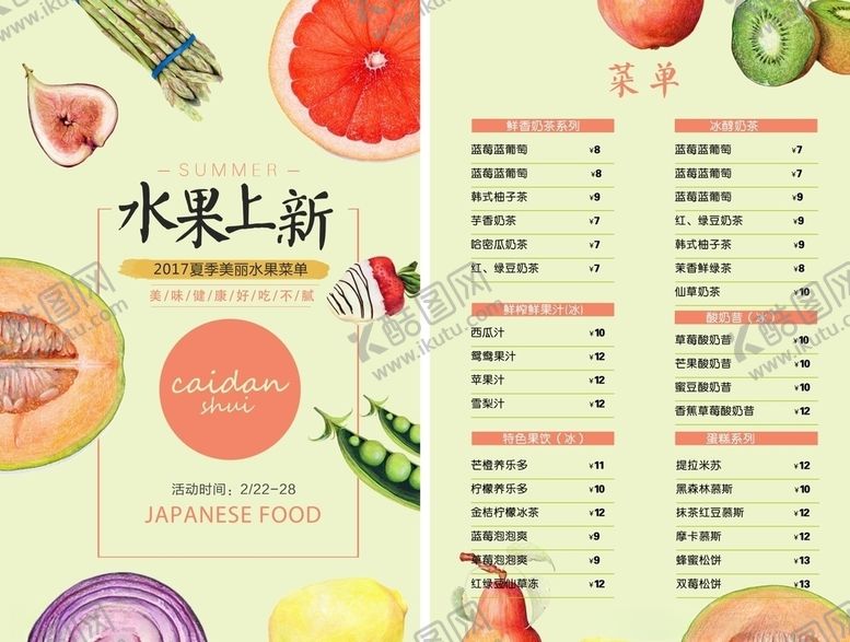 酷图网为你提供精美好看的素材模板下载,本次平面广告作品主题是菜单,素材ID编号是70456404121930335138,格式是PSD,建议使用打开编辑,或是"通过网上查询一下对应格式的打开软件";该菜单素材大小是24.91 MB,素材主要颜色以粉色为主,素材分享方式属于