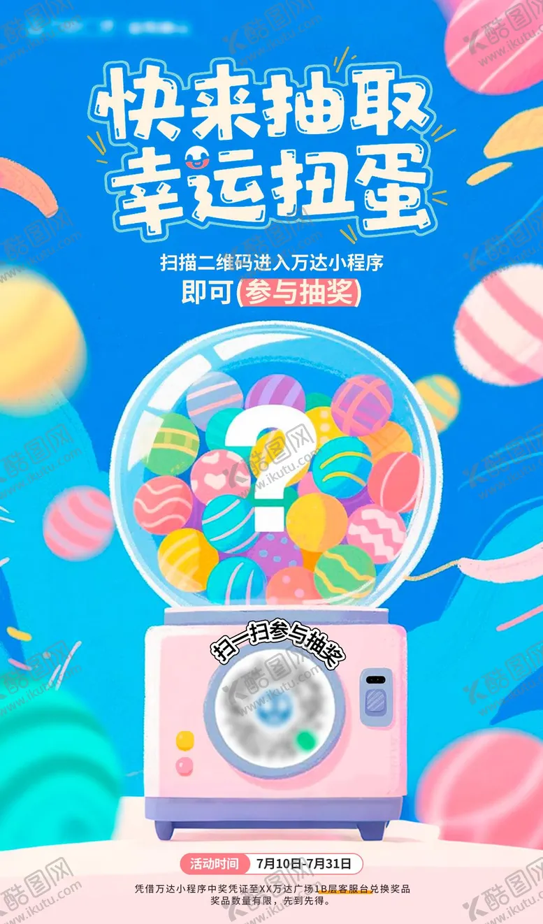 共享素材,尺寸大小是389*662像素,抽奖扭蛋机海报是由平面广告设计师yanchao0424上传,浏览本次作品的您可能还对海报,抽奖,扭蛋机,插画,简约,,平面广告,,平面广告感兴趣。
