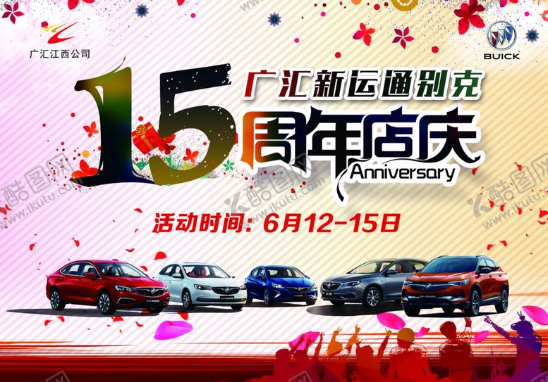 共享素材,尺寸大小是8268*5787像素,15周年店庆是由平面广告设计师liqi1987712上传,浏览本次作品的您可能还对别克,周年庆,15周年,车展背景,店庆,平面广告,,平面广告感兴趣。