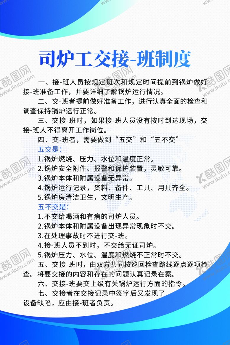 共享素材,尺寸大小是1701*2551像素,司炉工交接班制度是由免抠元素设计师zhonghuiling2009上传,浏览本次作品的您可能还对司炉工,交接班,准备工作,巡回检查,清洁卫生,,免抠元素,,免抠元素感兴趣。