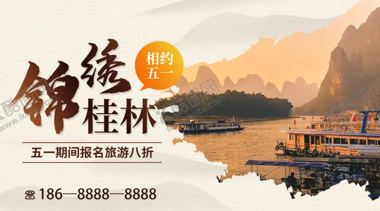 共享素材,尺寸大小是900*500像素,旅游海报是由平面广告设计师wychao1014上传,浏览本次作品的您可能还对五一旅游,劳动节,出行旅游,桂林海报,水墨风,平面广告,,平面广告感兴趣。
