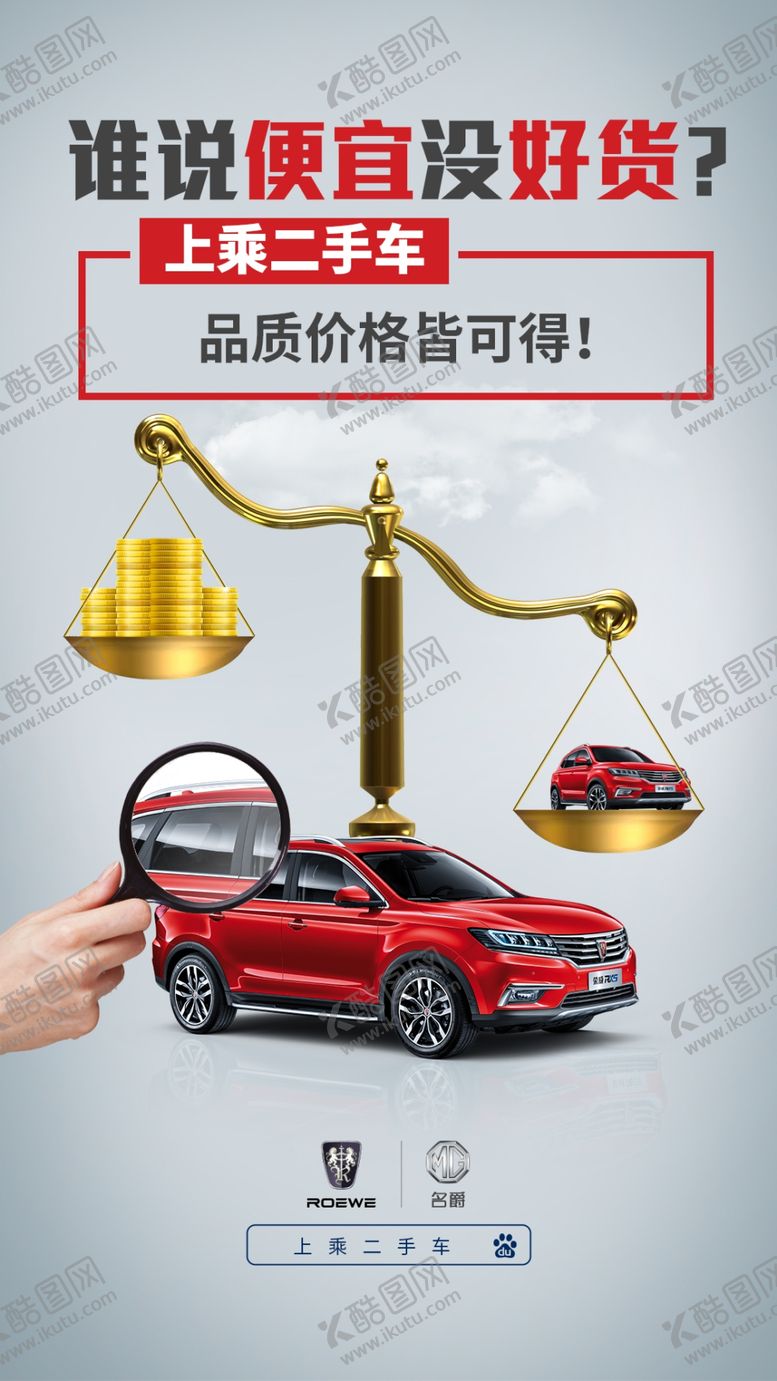 原创共享素材,尺寸大小是1080*1920像素,二手车汽车海报是由平面广告设计师kqdnf上传,浏览本次作品的您可能还对二手车,比价,放大镜,天秤,便宜,好货,,平面广告,,平面广告感兴趣。