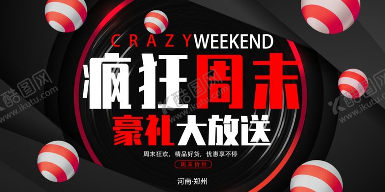 原创共享素材,尺寸大小是2362*1181像素,疯狂周末是由平面广告设计师gonyen上传,浏览本次作品的您可能还对疯狂周末,疯狂周末海报,豪礼大放送,黑色背景,彩球,促销海报,平面广告,,平面广告感兴趣。