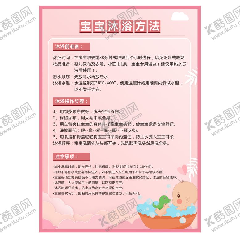 酷图网为你提供精美好看的素材模板下载,本次平面广告作品主题是宝宝沐浴方法,素材ID编号是74713812300256412296,格式是CDR,建议使用打开编辑,或是"通过网上查询一下对应格式的打开软件";该宝宝沐浴方法素材大小是5.83 MB,素材主要颜色以白色为主,素材分享方式属于