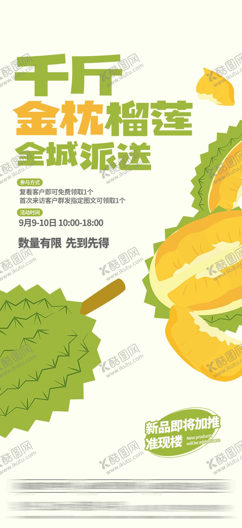 共享素材,尺寸大小是1575*3425像素,地产送榴莲活动海报是由平面广告设计师zhangqian728上传,浏览本次作品的您可能还对海报,地产,榴莲,活动,福利,插画,宣传,,平面广告,,平面广告感兴趣。