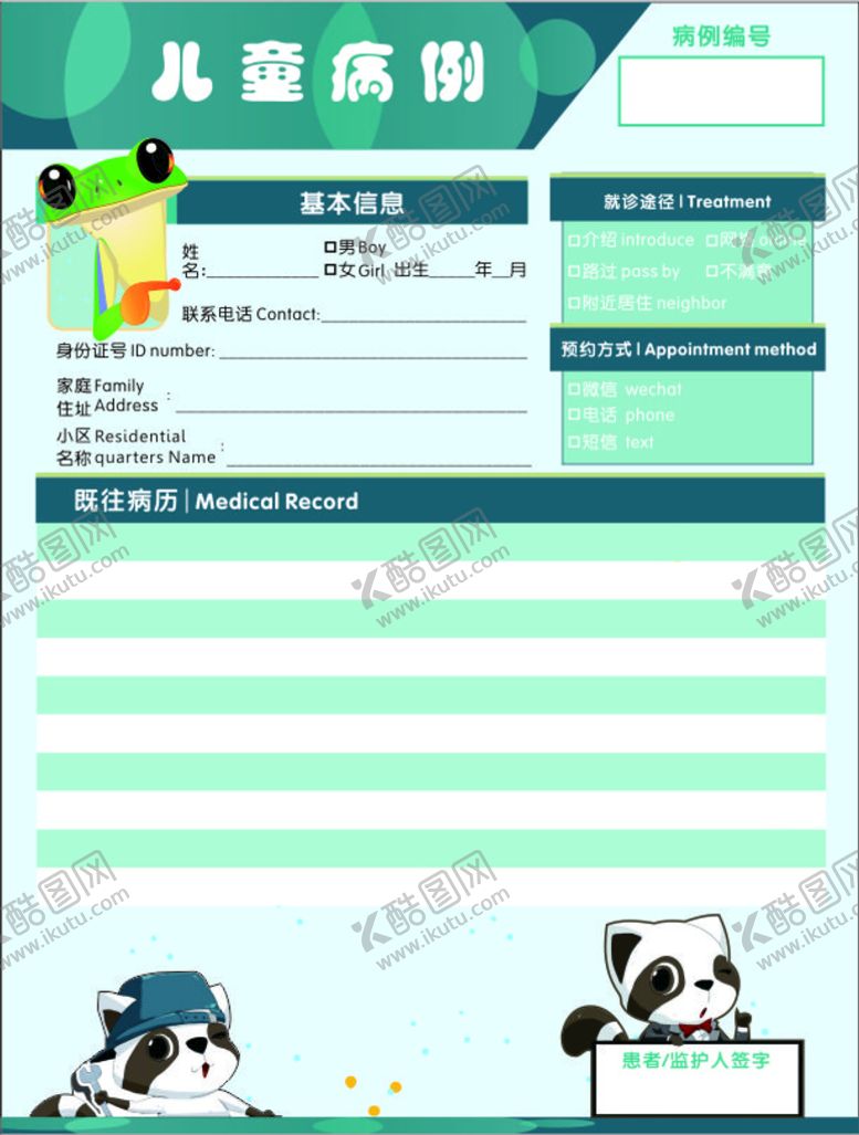 酷图网为你提供精美好看的素材模板下载,本次平面广告作品主题是病例表,素材ID编号是76361310211935433427,格式是CDR,建议使用打开编辑,或是"通过网上查询一下对应格式的打开软件";该病例表素材大小是413.87 KB,素材主要颜色以白色为主,素材分享方式属于