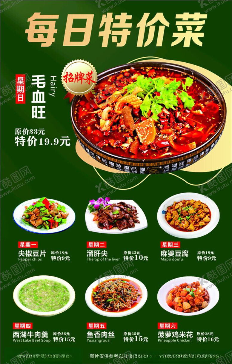 像素,特价菜是由平面广告设计师sally2006上传,浏览本次作品的您可能还对特色菜,特价菜,美食,小吃,海报,灯箱,毛血旺,炒菜,平面广告,,平面广告感兴趣。