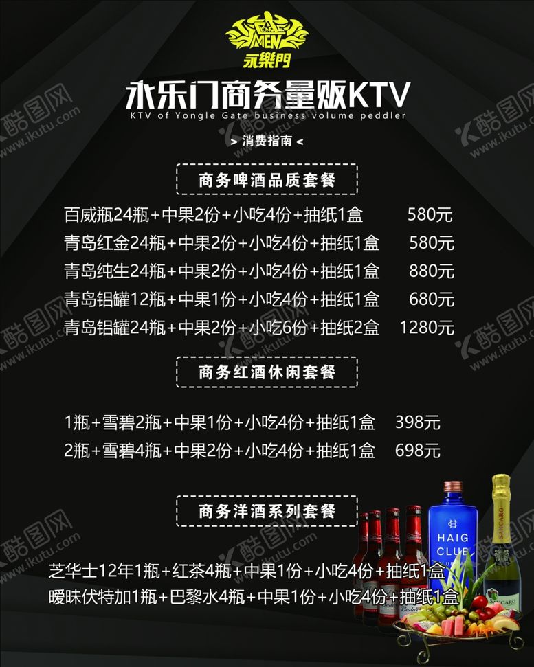 酷图网为你提供精美好看的素材模板下载,本次平面广告作品主题是KTV酒水,素材ID编号是77980903292329325491,格式是PSD,建议使用打开编辑,或是"通过网上查询一下对应格式的打开软件";该KTV酒水素材大小是50.48 MB,素材主要颜色以黑色为主,素材分享方式属于