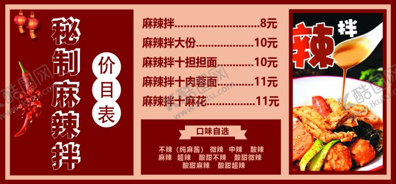 原创共享素材,尺寸大小是4063*1890像素,麻辣拌价目表是由平面广告设计师ALFU上传,浏览本次作品的您可能还对麻辣拌价目表,麻辣拌,价目表,辣椒,小吃,美食,麻辣拌图片,灯笼,美味,平面广告,,平面广告感兴趣。