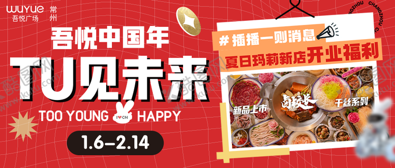 共享素材,尺寸大小是1080*1920像素,兔见未来横图海报是由平面广告设计师manhong85上传,浏览本次作品的您可能还对海报,广告展板,商场,中国年,兔年,美食,餐饮,开业,横版,,平面广告,,平面广告感兴趣。