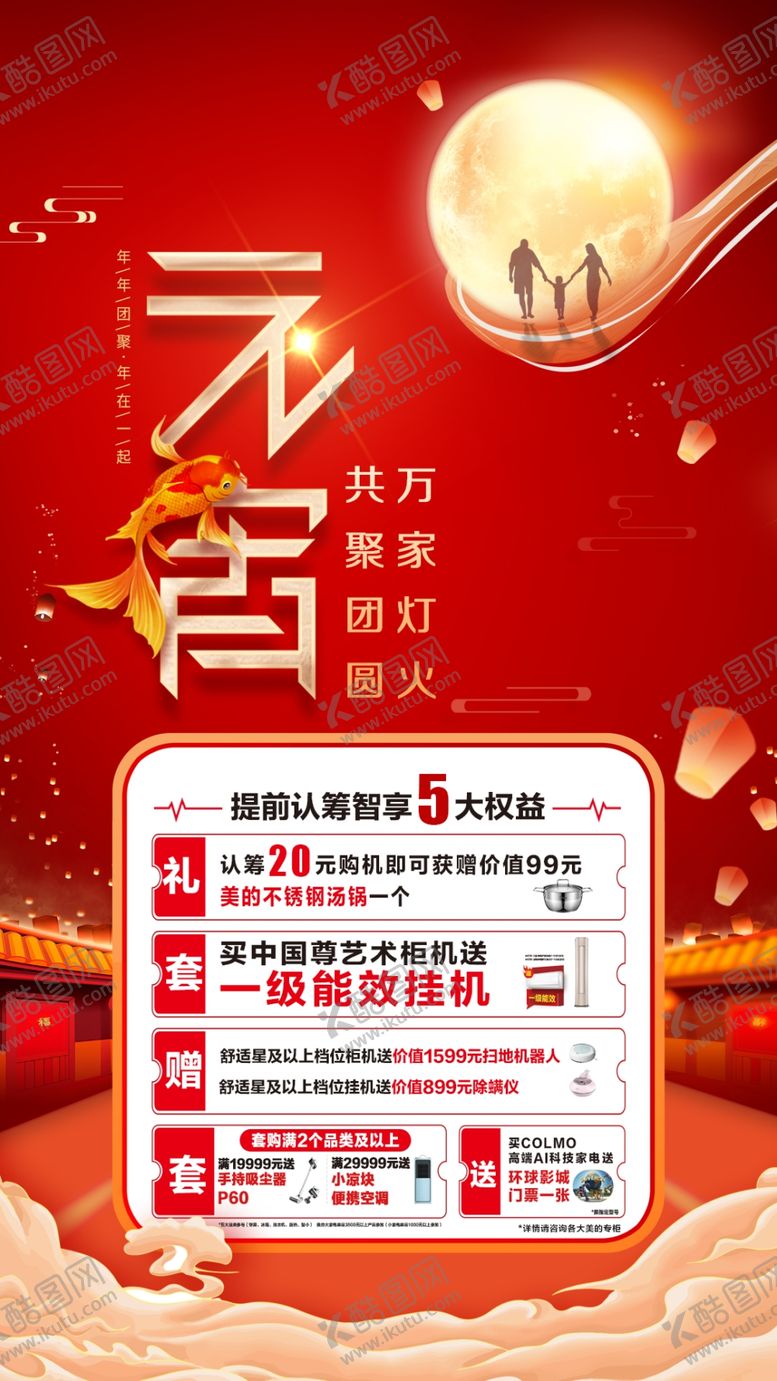 共享素材,尺寸大小是1080*1920像素,元宵节海报是由平面广告设计师shibaotuan上传,浏览本次作品的您可能还对元宵节,阖家团圆,空调卖点,排版,元宵文字,红色促销海报,平面广告,,平面广告感兴趣。